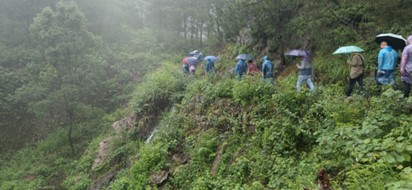 古道上,全體員工分為4組隊伍,迎著細(xì)雨,步伐矯健,從茶馬古道到紫云軒,5公里的路程中,員工們互幫互助,展現(xiàn)出交投鐵軍優(yōu)秀的團(tuán)隊意識。