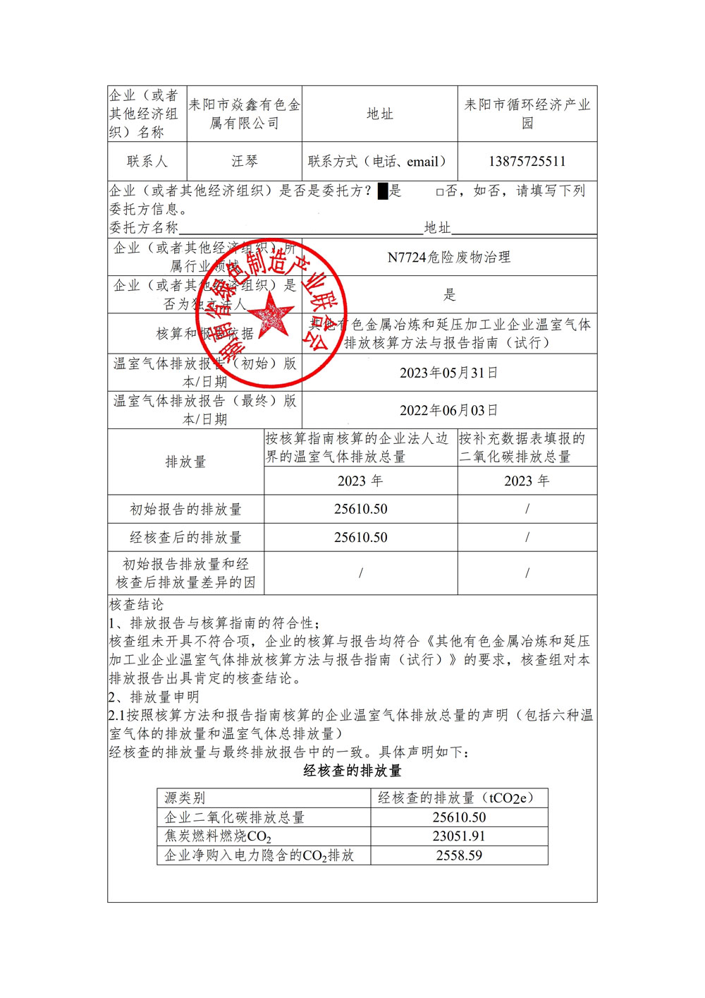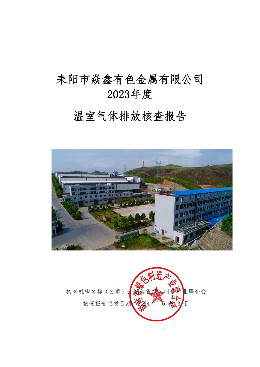 耒陽市焱鑫有色金屬有限公司-第三方溫室氣體 -2023年